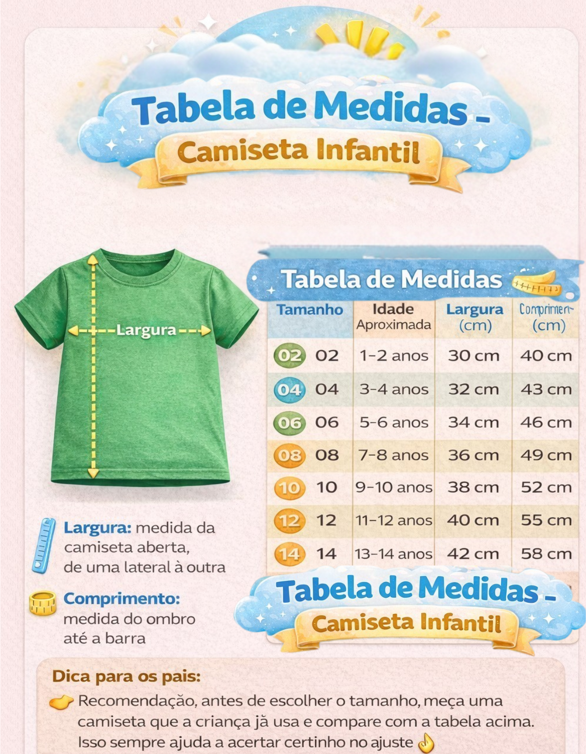 (Confira a tabela de medidas para escolher o tamanho ideal)